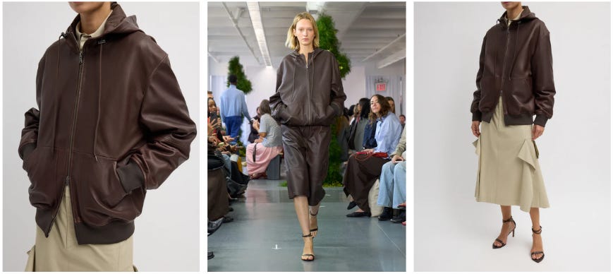 Q: “Is the brown Leather Zip Up Hoodie Jacket the same weight as the pebbled black leather jacket from last Fall?”