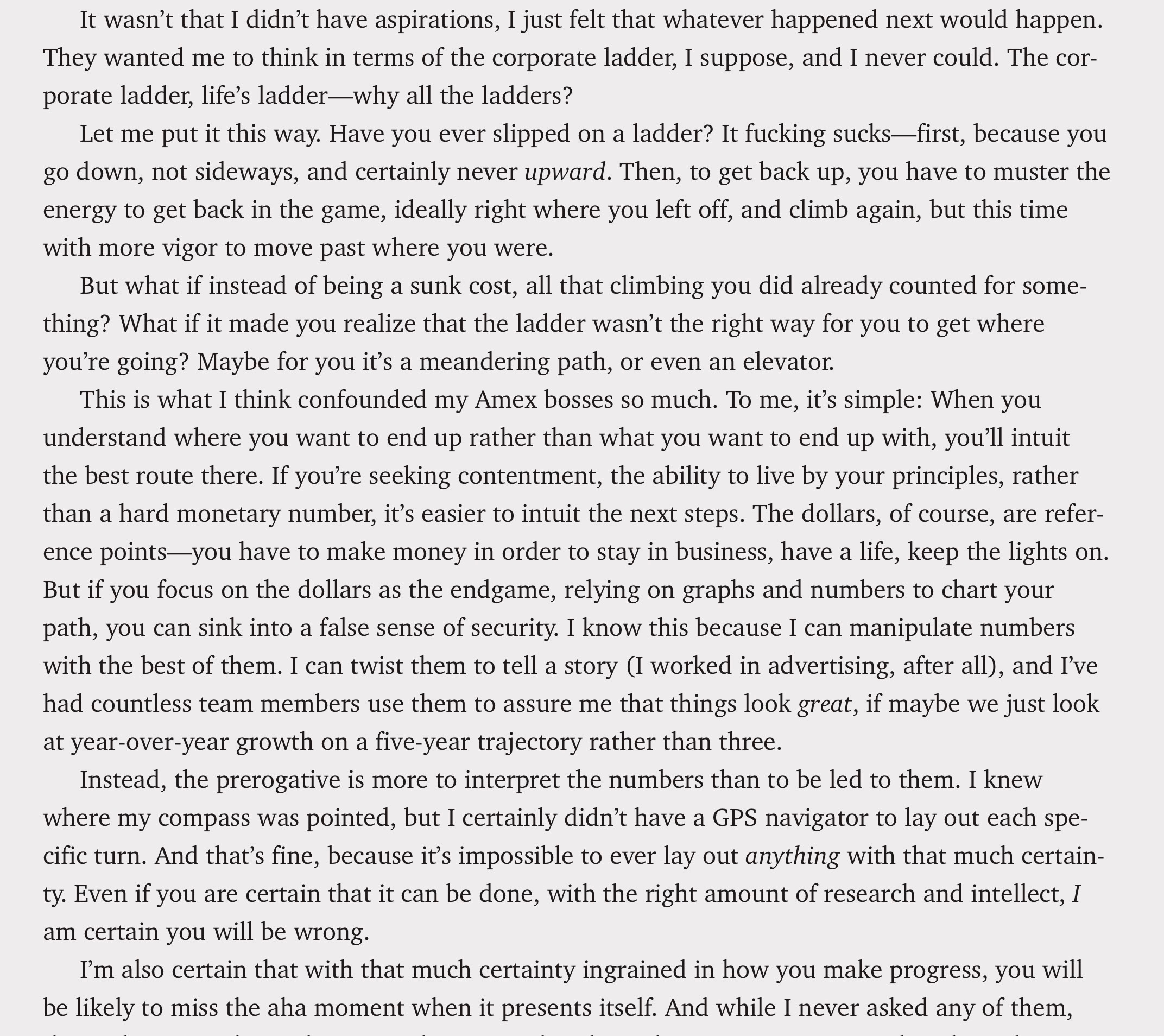 I wonder, is the specificity of this so enticing to people? The answer above wraps it up so neatly. Yet I’m 100% sure this is not where life happens. And softskills can only be acquired when you’re living your life, they can’t be preordained. They’re happening at you when you don’t even know it. But, in order to receive them, you have to be in the right state of mind. Present. Almost Reckless lays out a blueprint for how to get in the right frame of mind to collect, identify and codify your soft skills.