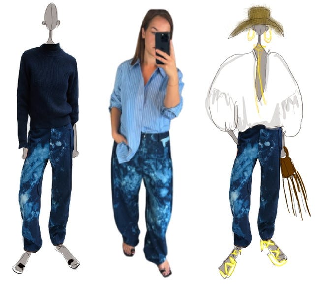 Person: “You’re wearing the tie-dye jean. But you paired it with a navy sweater, so that it looks more age appropriate, right?”