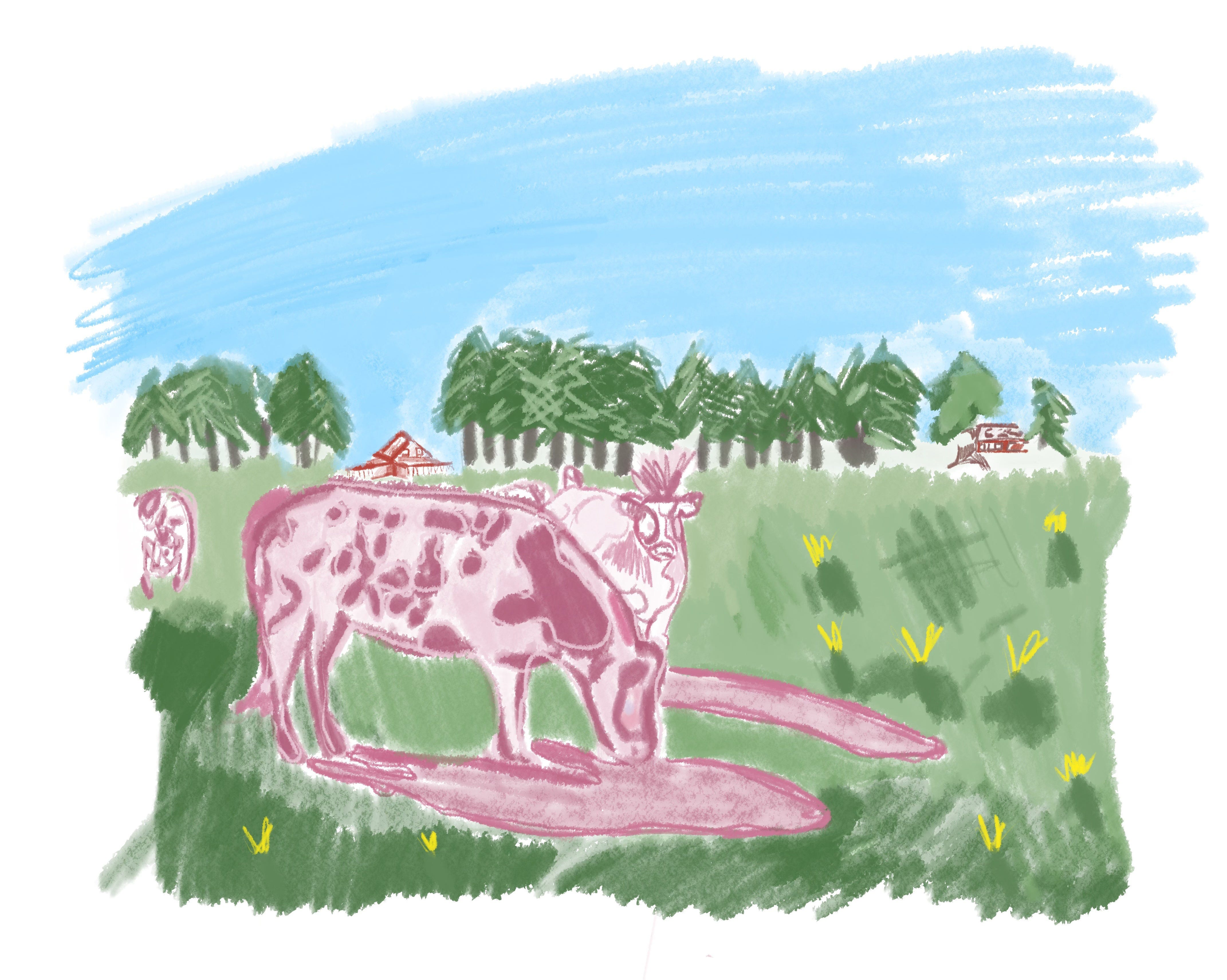 I had an intuition for the colors we needed – soft shades of pink, blue, green, with hints of yellow. In trying to evoke the feeling of spring-time in this field of Belgian cows, these colors were the most apt translation of the emotion - the cows I met were kind and playful, the air was light and the sun soft, effortless even. Being along the wood fence of that pasture, I felt like a ten-year old, in a beautiful wonderland, and that is the ethos we wanted to portray through this tee. When you wear it, you are transported to this world of fun, color, and youth.