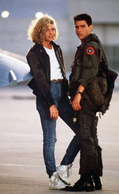 #6: Top Gun, Kelly McGillis. The brown leather aviator jacket. The year of this movie my dad splurged big, when to Atlanta to Banana Republic and bought my sister and I each this jacket. So chill, so cool…..my everything.