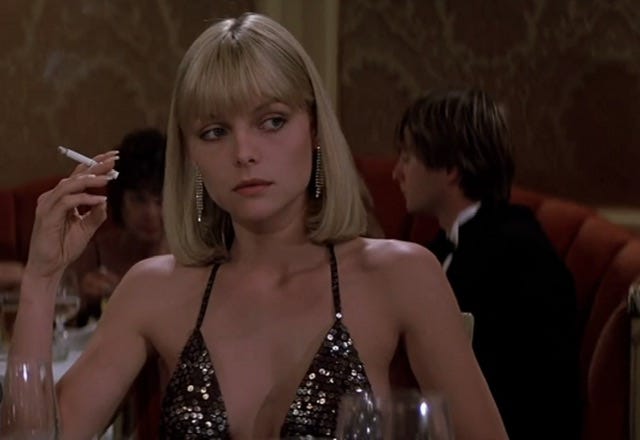 #8 Scarface - Michelle Pfeiffer. The ultra simplistic but modern sexiness of the skimpy dress. I’m drawn to this everytime. Hence my love of bareness that still has a bit of class/formality/simplicity.